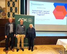 Franz Huber, stellvertretender Direktor der AOK Direktion Bayerwald-Deggendorf, Prof. Dr. Johannes Hamann, Ärztlicher Direktor Bezirksklinikum Mainkofen, und Margaret Tuchen, Vorsitzende des Kneippvereins (v.li.). Foto: C. Alenfeld