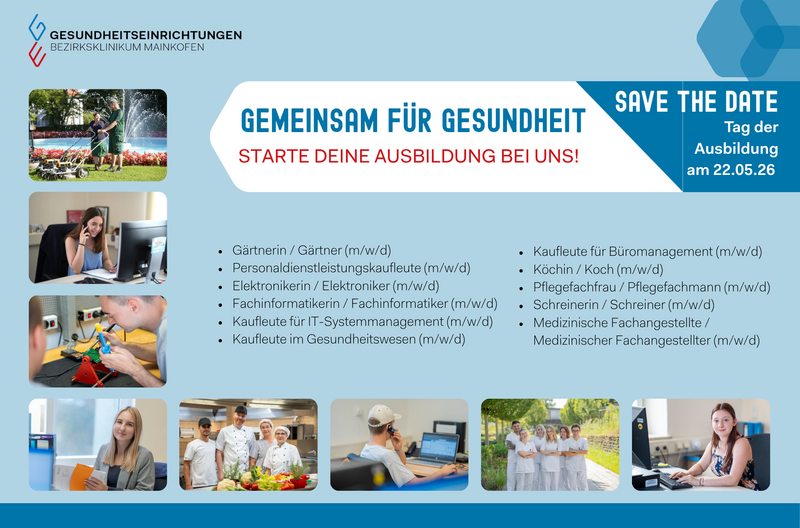 - Regelmäßige Klinikrundgänge und informative Vorträge zu Ausbildungsmöglichkeiten am Bezirksklinikum Mainkofen.